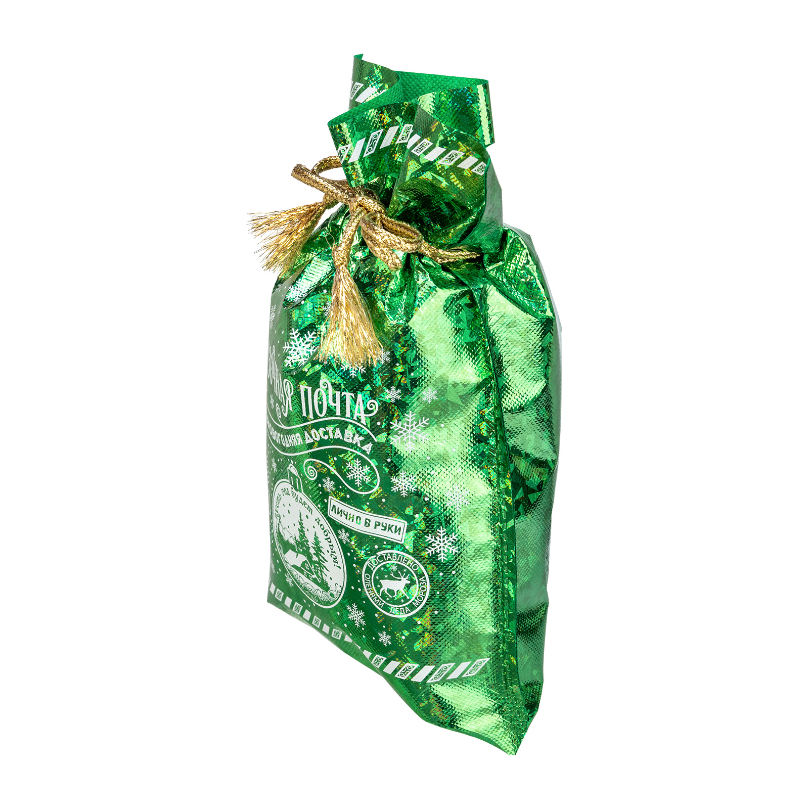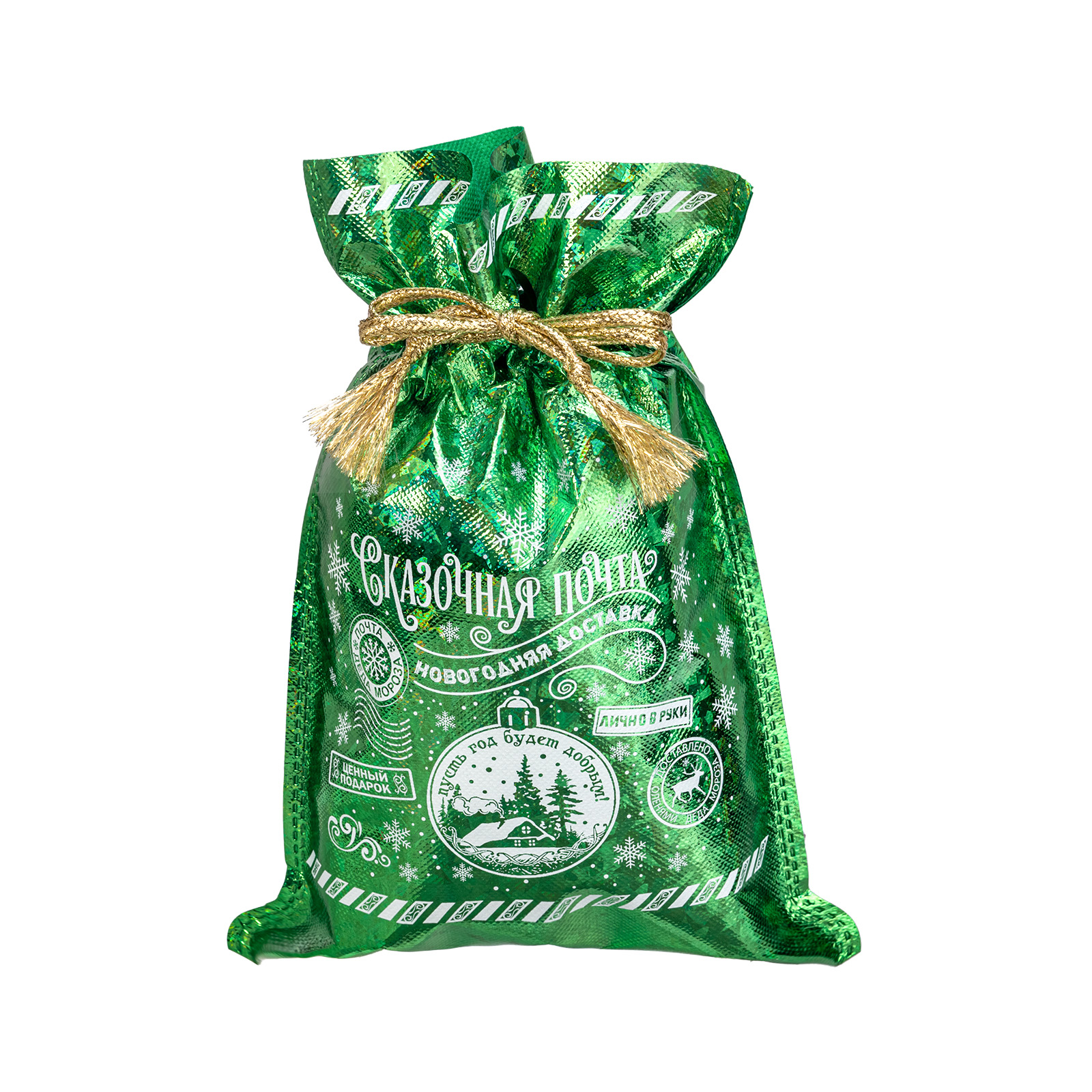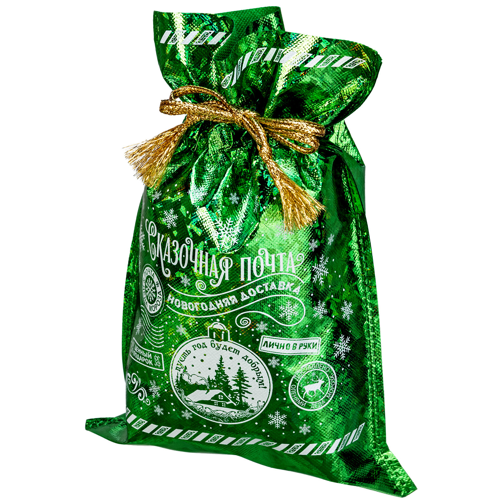 Интересный вариант новогоднего подарка – «Мешок Сказочная почта». Отлично подойдет на подарок в 2026 году с символом Лошадь. Внутри такого презента находится кондитерский набор весом 500 граммов.