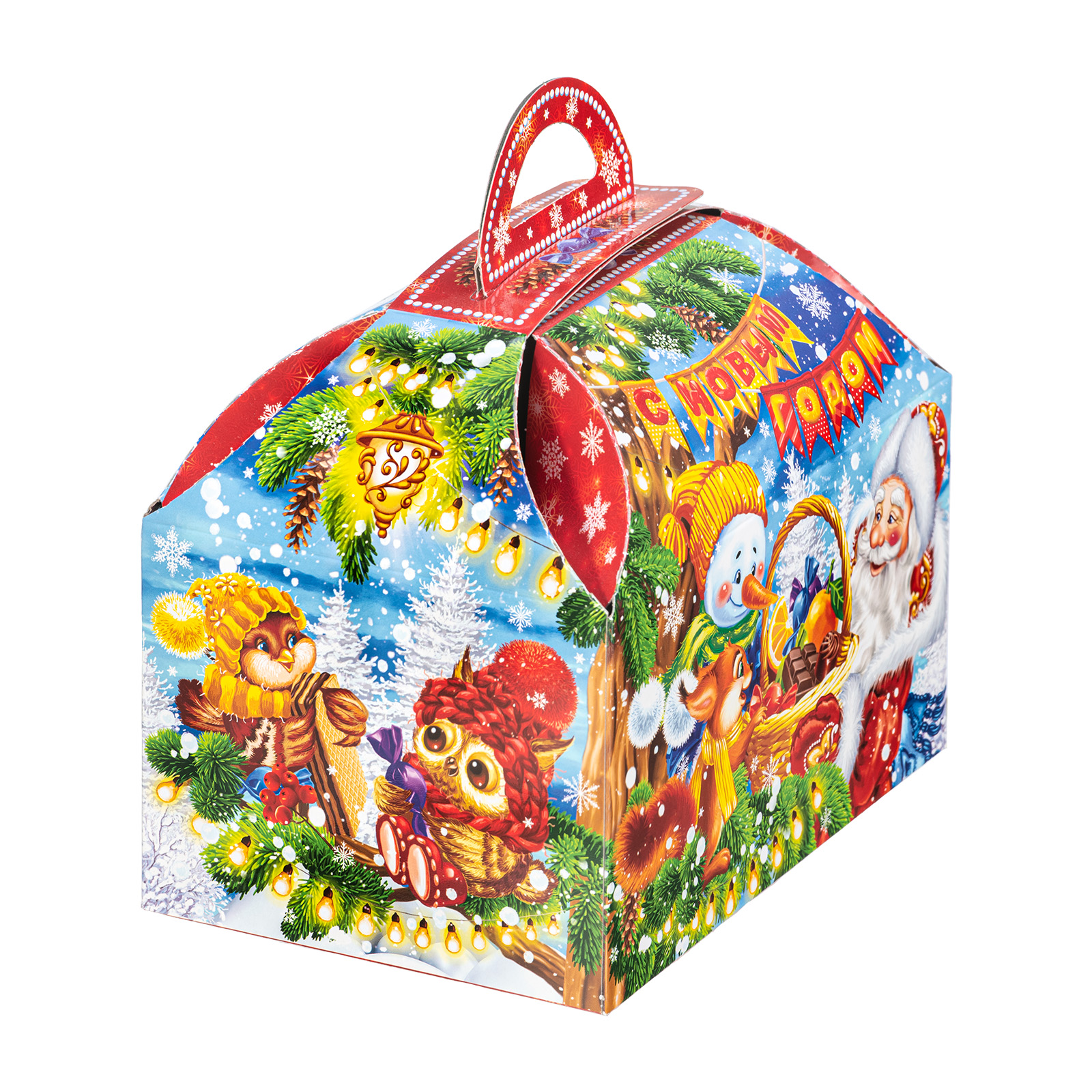 Подарите своим родным и близким безграничную радость вместе с новогодним сладким подарком “Сундук лакомств”. Этот подарочный набор представляет собой небольшую картонную коробочку в форме сундука с удобной ручкой сверху. На упаковке нанесен очень яркий привлекательный рисунок, на котором Дед Мороз и его друзья обмениваются подарками и веселыми улыбками. В состав подарка входит 900 грамм вкусных и разнообразных лакомств от ведущих кондитерских предприятий, а также небольшой памятный сувенир в виде символа наступающего года.